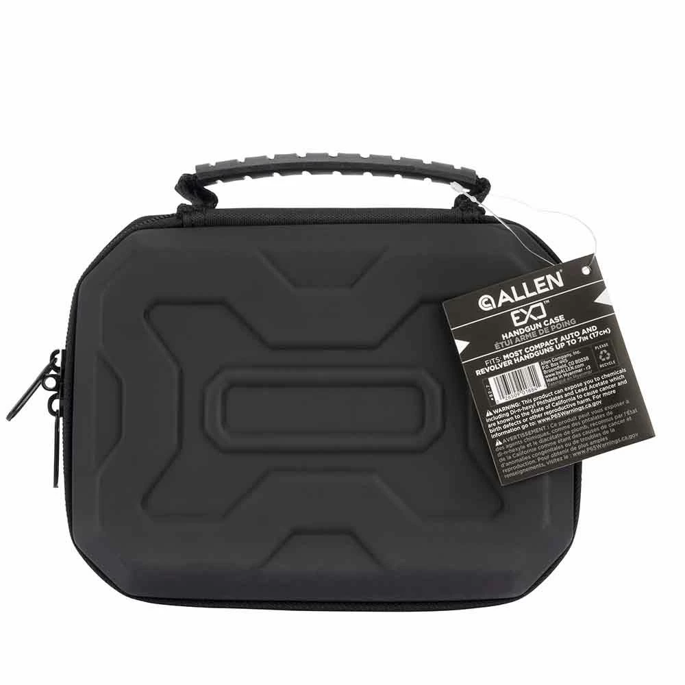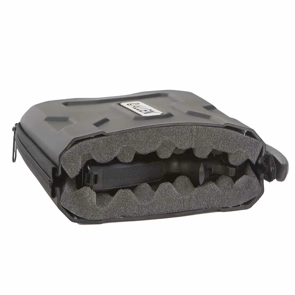 The EXO Handgun Case by Allen is what every handgun owner needs for their favorite Handgun. This EXO Handgun case features a thermo-molded exoskeleton with a micro egg crate foam interior, both designed to keep your firearm protected from dings and scratches while in transport. The heavy-duty lockable zippers also keep your firearm protected. Includes a brushed metal Allen nameplate and a comfortable molded carrying handle.