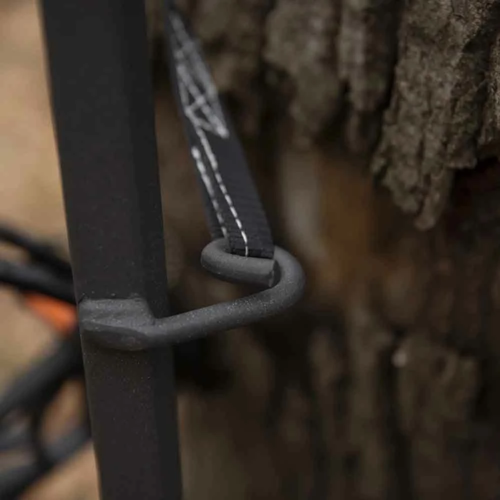 | Tree Attachment | Noiseless strap attachment: Looped straps fits over a ram-horned shaped receiver eliminating the noise of metal on metal contact. |