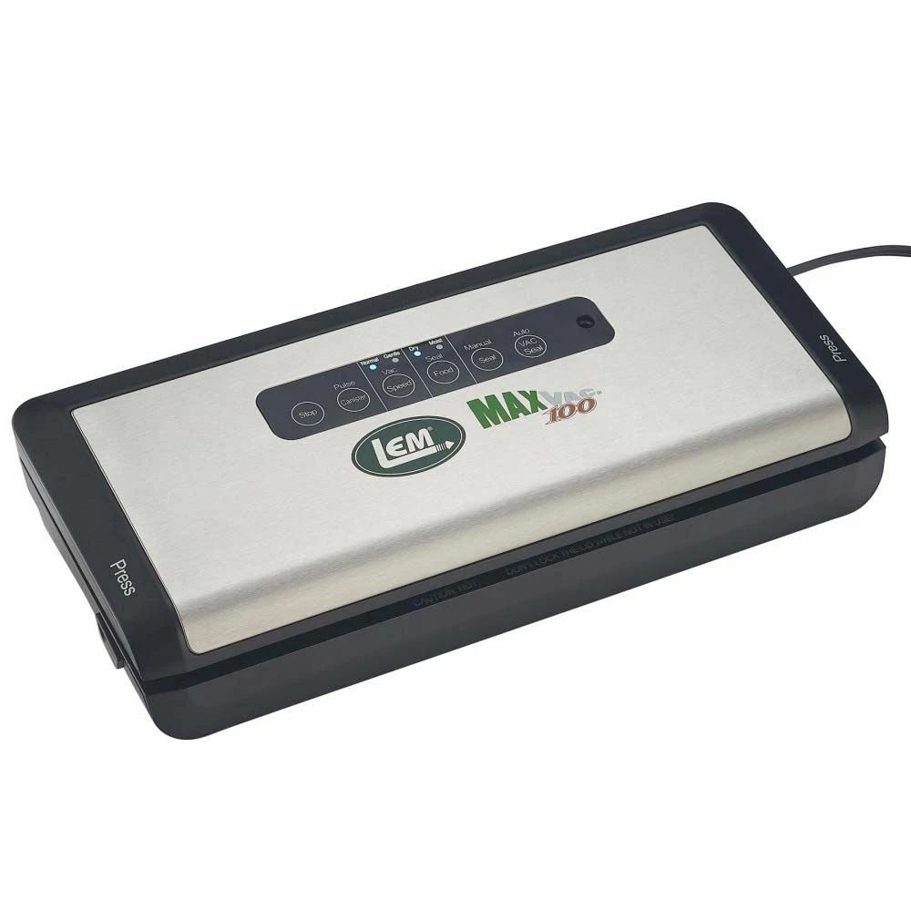 LEM Maxvac 100 Vacuum Sealer is the perfect counter top sealer to handle all your sealing needs. Sealer will do 26 consecutive seals and has a 12 in. seal bar. It also has an air port in the lid for canisters and an air port is in base. The lids locks. The compact footprint of 14-1/2 L x 6 in W is small enough to store in a drawer. It allows for up to 26 consecutive seals without stopping or cooling down.