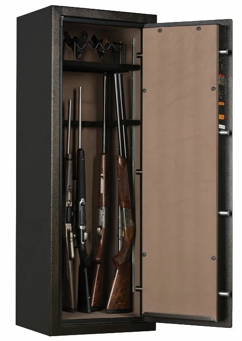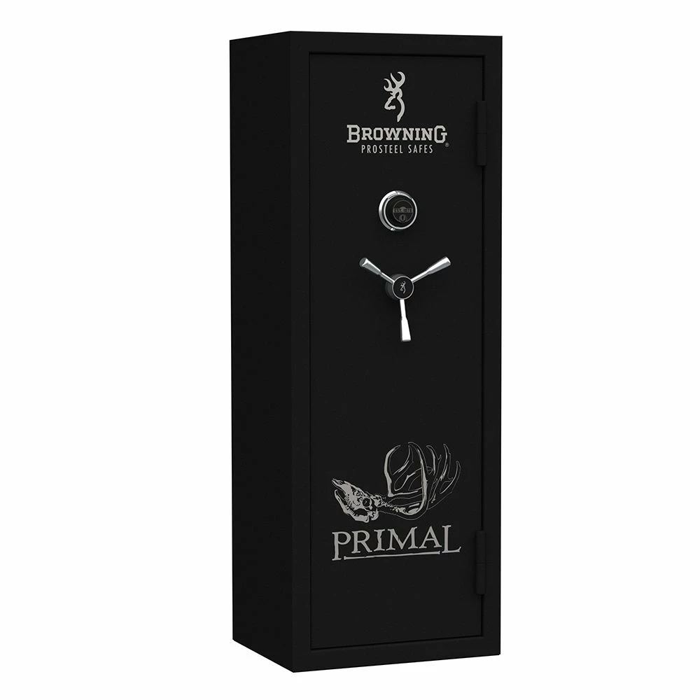 Browning Primal 12-Gun Safe features a S&G mechanical lock, heavy duty, exterior hinges, a 3-spoke handle and a integrated fully reinforced door frame. The interior is beige fabric with a standard black carpet shelving. There is 7, 2-way 1 in. bolts (4 active).#html-body [data-pb-style="621604468D315"]{justify-content: flex-start; display: flex; flex-direction: column; background-position: left top; background-size: cover; background-repeat: no-repeat; background-attachment: scroll; border-style: none; border-width: 1px; border-radius: 0px; margin: 0px 0px 10px; padding: 10px;}#html-body [data-pb-style="621604468D335"]{border-style: none; border-width: 1px; border-radius: 0px; margin: 0px; padding: 0px;}