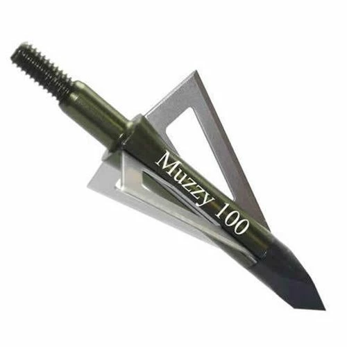 Muzzy 100 Grain 3-Blade Screw-In Broadhead features a 1 3/16 inch cutting diameter, .020 in. blade thickness, and the Bad To The Bone Trocar Tip!