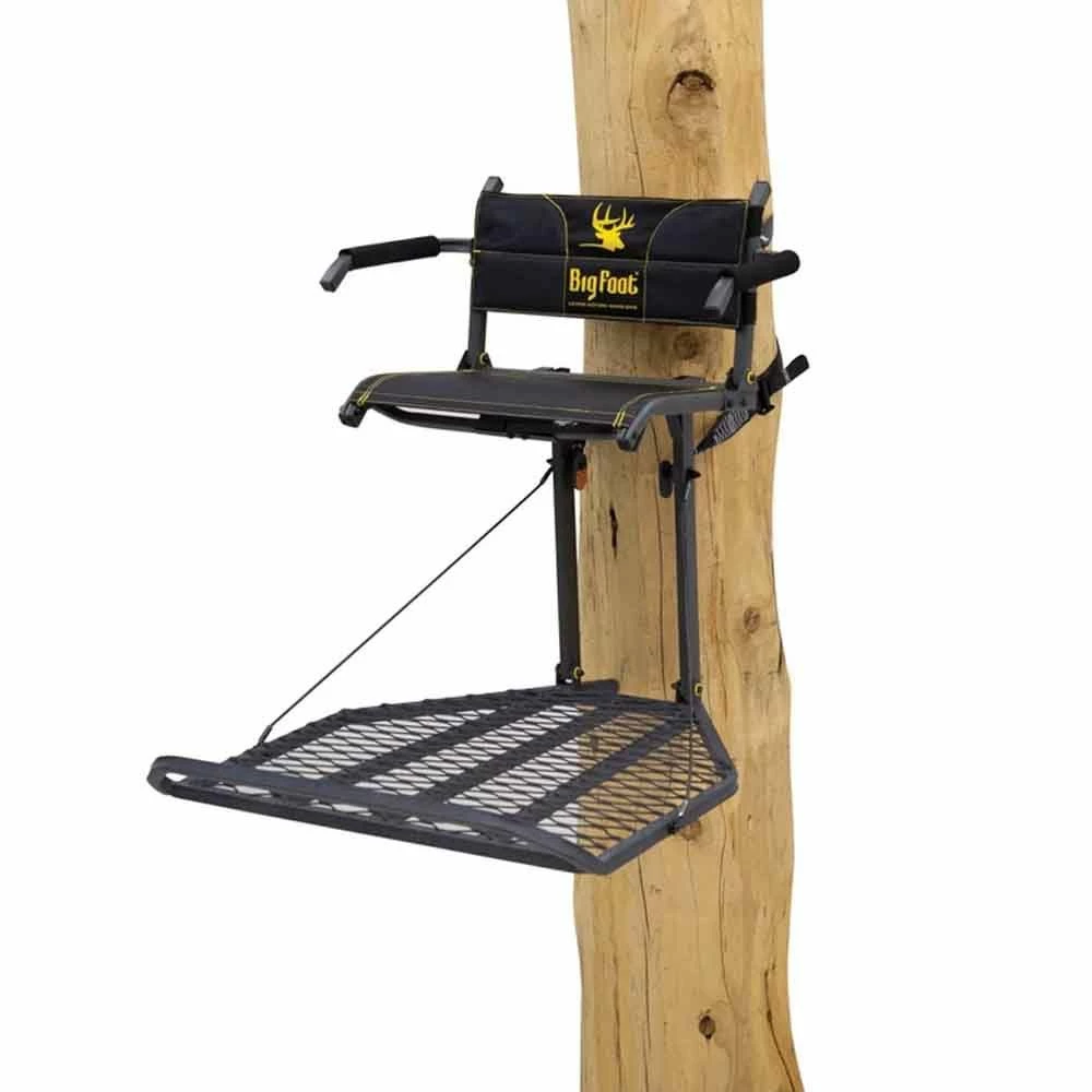 The Rivers Edge Big Foot™ Brute™ features a flip-up, TearTuff™ mesh seat with armrests paired with an oversized 30 in. wide x 37 in. deep platform and footrest providing plenty of extra room for standing shots. The unique Big Foot™ lever action system and noiseless strap attachment creates a secure and silent installation during your hunt.