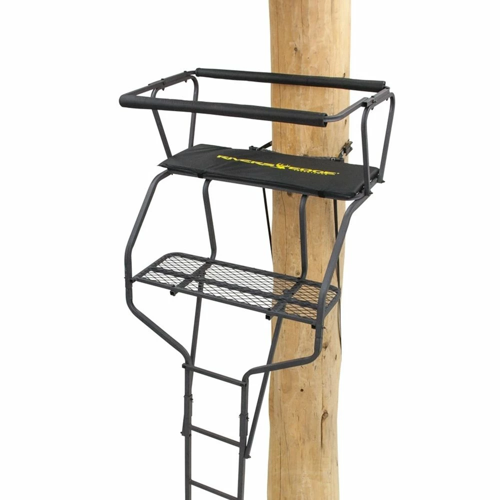 Rivers Edge® 2-Man Ladder Stand 18 Ft. features a comfortable bench seat is roomy enough for two hunters or great for a solo hunter who likes extra elbow room. With a padded, flip-back shooting rail it’s perfect for gun hunters.