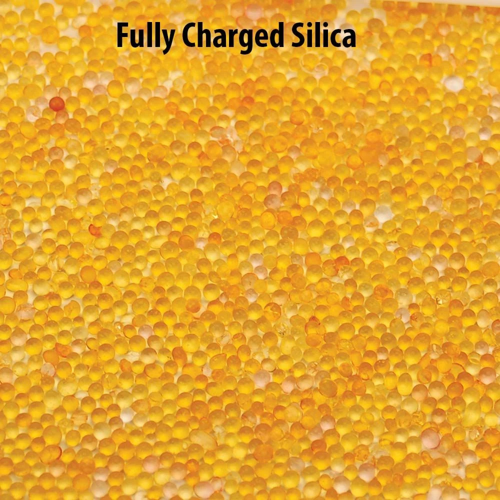 Lockdown® Silica absorbs moisture from the air inside a vault or storage area preventing condensation, mildew and rust from damaging valuable firearms. Crystals change color once fully saturated and can be easily recharged in the oven.
