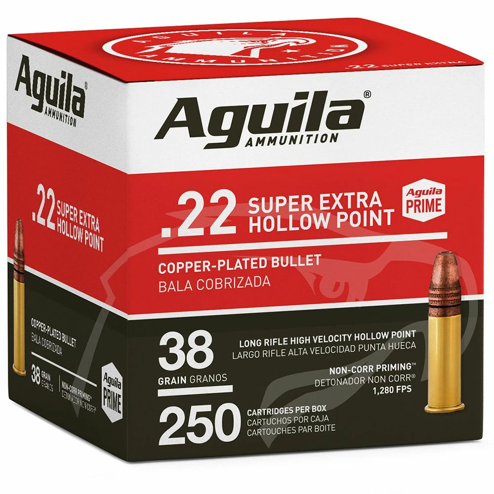 The knockout power of this 22 high velocity hollow point round from Aguila Ammunition will help you take out small game and varmints with confidence. These hard-hitting rounds deliver controlled expansion with devastating results.