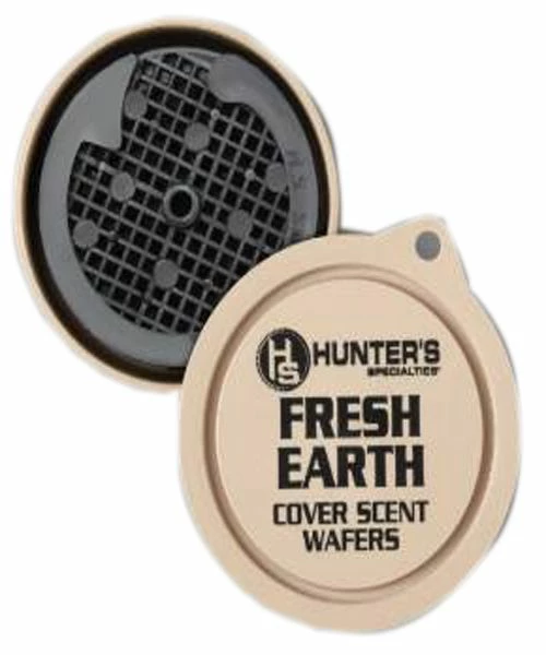 Hunters Specialties Primetime Fresh Earth solid cover scent wafers and container.