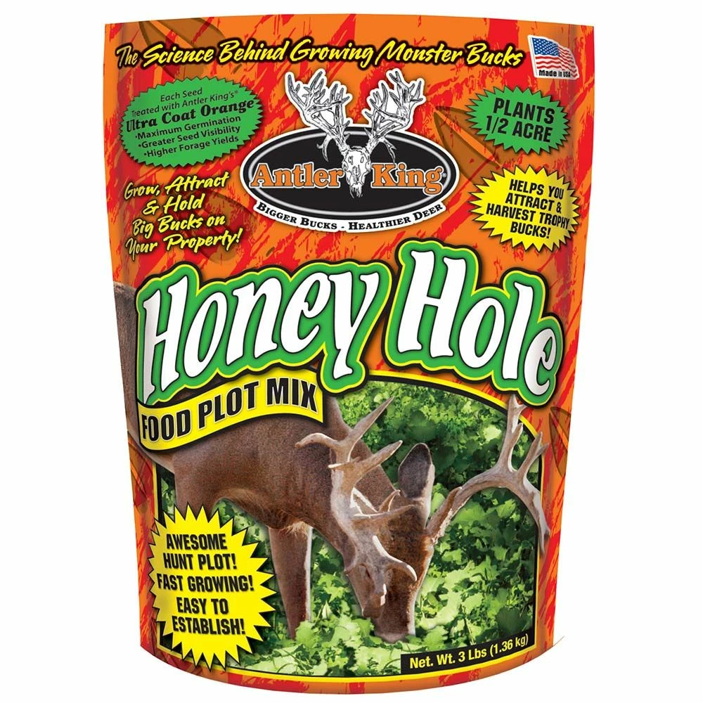 Antler King® Honey Hole Food Plot Mix is a mixture of 5 unique varieties of brassicas including 2 varieties of turnips and 3 varieties of rapeseed that were hand selected for optimum nutrition and attraction in the Fall and Winter. These plant varieties can thrive with little or no tilling and following the first frost the plants will turn sweet and this plot will be a highly coveted food source the rest of the season.