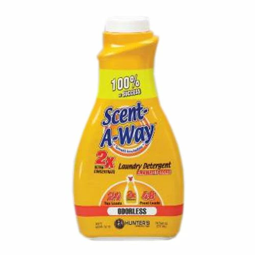 Hunters Specialties Scent-A-Way® Laundry Detergent has ultra concentrated with Clean Rinse and Stain Guard to prevent re-depositing of dirt/soil. Cleans in all temperatures. 24 Oz bottle.