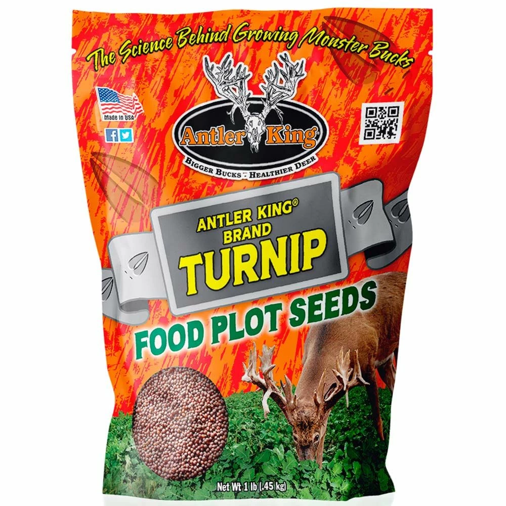 The Antler King® brand Turnip Food Plot Seeds can be planted as a stand alone food plot or mixed with other forage — such as Clover, Chicory or other cereal grain. Best planted in July through September for a great hunt plot. Deer generally will consume the “greens” and then eventually dig out the turnip bulb to eat. This variety can be very high in protein. We have tested this variety and found it to be in excess of 20% protein in February. Ideal pH range is 6.0 to 7.0.