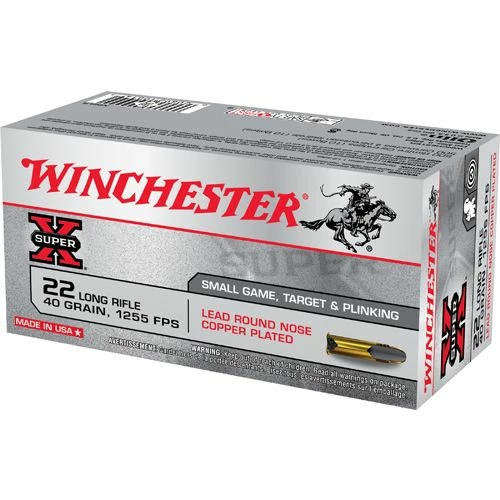Winchester® Super-X 22 Long Rifle 40 Grain LRN (Lead Round Nose) Ammunition is used for hunting Small Game, Plinking and Target Practice. It has proven accuracy and is sure functioning. It is made with exceptional quality and outstanding performance.