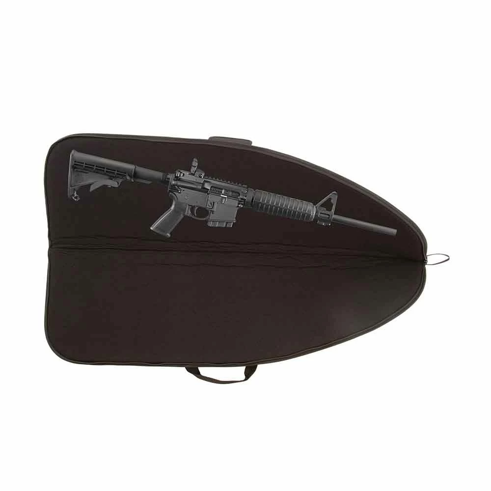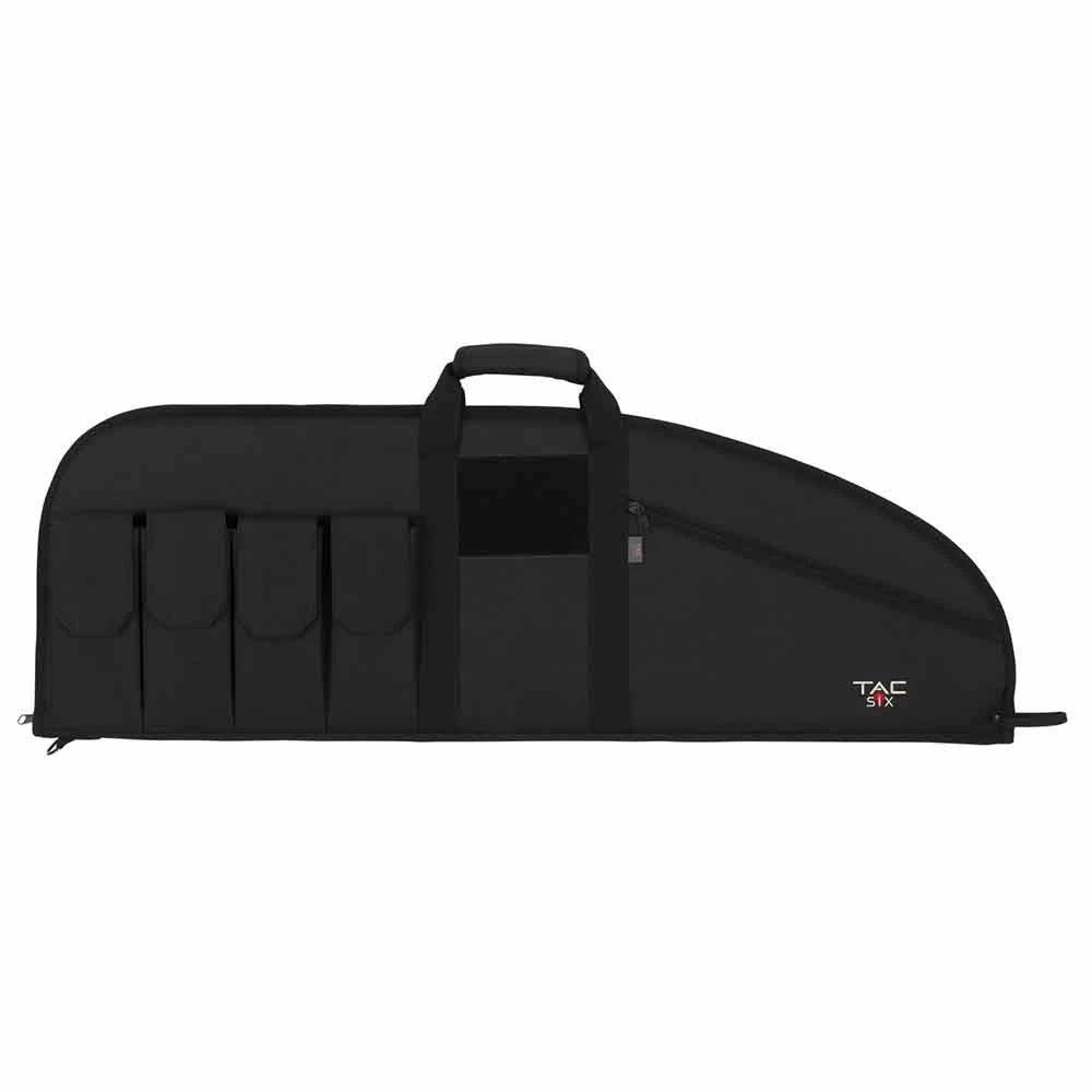 The Tac-Six Range Tactical Rifle Case fits modern sporting firearms with or without scopes. It features four magazine pockets with hook and loop closures, plus a large zippered accessory pocket that fits targets, gloves, ammo, and other accessories. A large 5.25 x 4.25 in. hook and loop patch is perfect for adding morale and name patches. The exterior of the case is constructed from heavy-duty Endura fabric, and the inside of the case has a soft knit lining and thick foam padding to protect your firearm. Includes durable web handles with a padded handle grip.