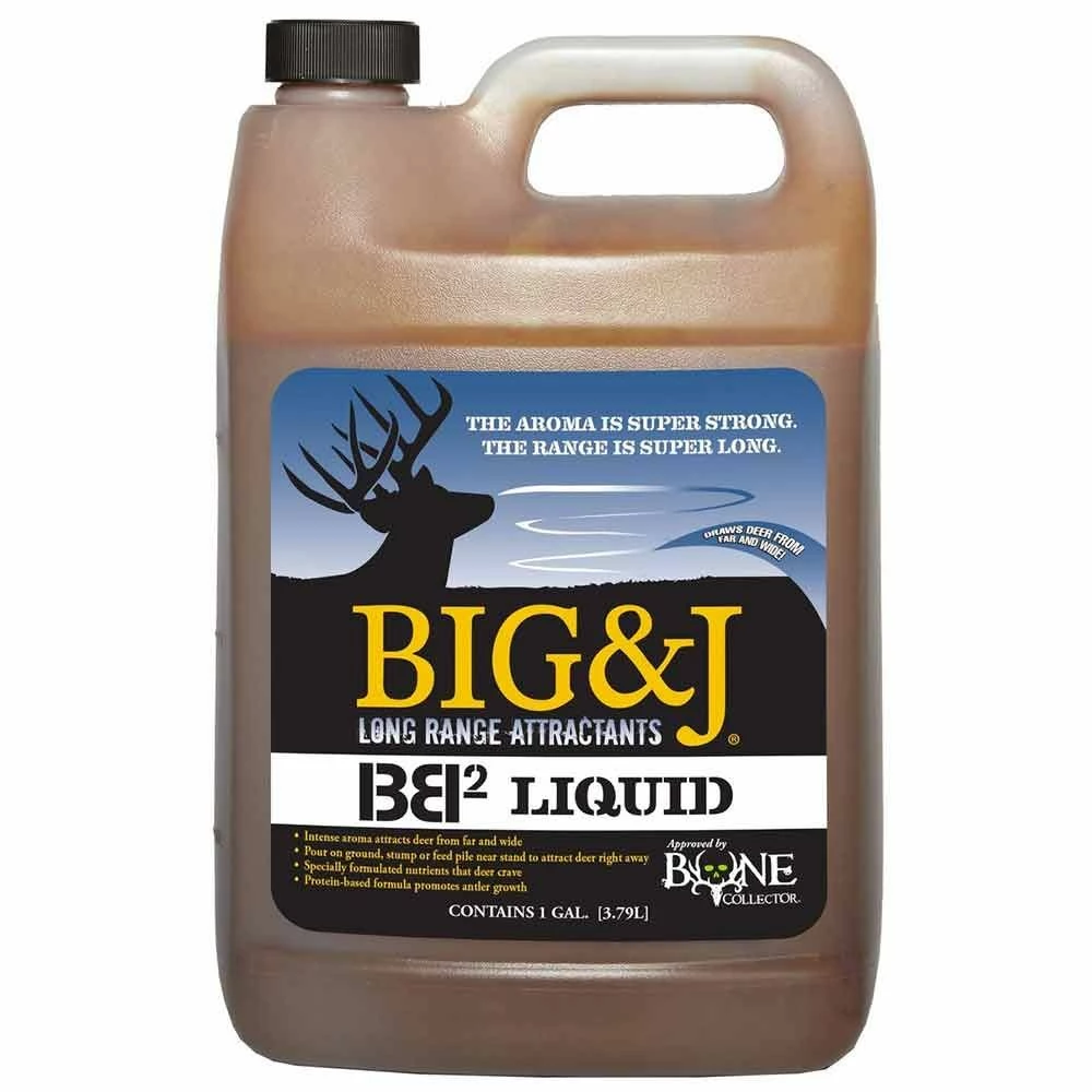 Big & J BB2 Liquid super charges the feed site with an attractant power. Pour it on the ground or blend in with other feeds to give the area the attracting aroma and taste that Big and J is known for. Unlike other liquid attractants that are flavored sugar water, BB2 liquid offers some nutritional value with a protein content of 8% and fat content of 2%. In addition, BB2 liquid provides salt that deer love and calcium and phosphorus they need to promote bone growth.