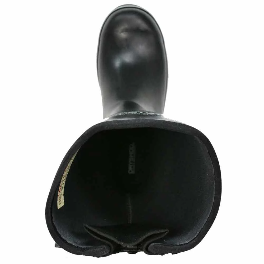 The Dryshod Mudslinger Mid Men's Farm Boot is a premium rubber farm boot with WIXIT Lining Waterproof protection from muddy, messy terrain and WIXIT Cool-Clad™ wicking airmesh lining for all-day comfort. The self-cleaning tread design resists build-up of mud, dirt, grit and gravel. There is a fully seam-sealed neoprene bootie construction with oil-resistant/slip-resistant rubber formula. Steel shank adds arch support and there is a rigid heel kick for easy on/off convenience. Adjustable Gusset Style – customize to fit larger calves for optimum comfort and protection with the expandable gusset and adjustable locking strap. Extra room also accommodates layers of clothing being tucked into the boot.