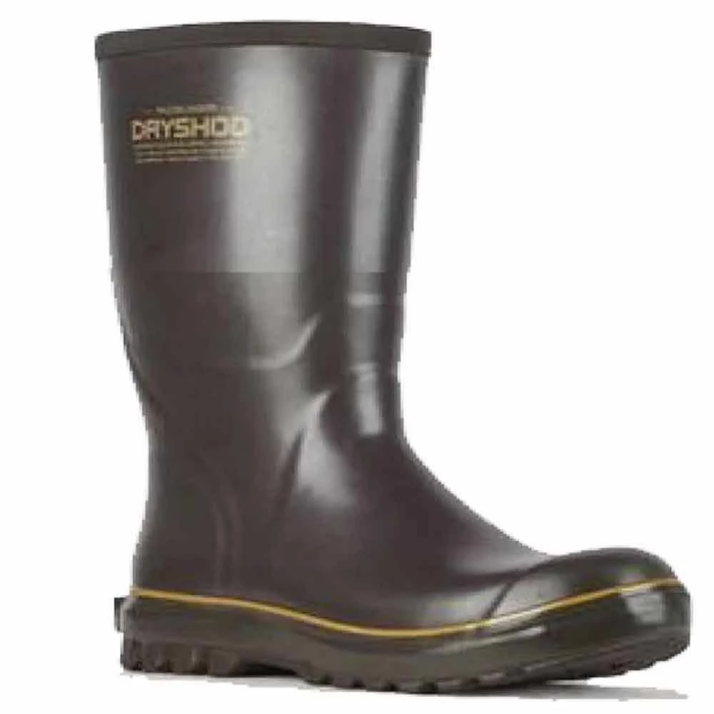 The Dryshod Mudslinger Mid Men's Farm Boot is a premium rubber farm boot with WIXIT Lining Waterproof protection from muddy, messy terrain and WIXIT Cool-Clad™ wicking airmesh lining for all-day comfort. The self-cleaning tread design resists build-up of mud, dirt, grit and gravel. There is a fully seam-sealed neoprene bootie construction with oil-resistant/slip-resistant rubber formula. Steel shank adds arch support and there is a rigid heel kick for easy on/off convenience.